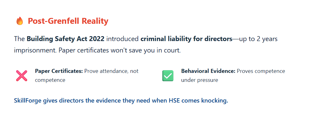 Behavioral evidence that protects directors from Building Safety Act 2022 criminal liability